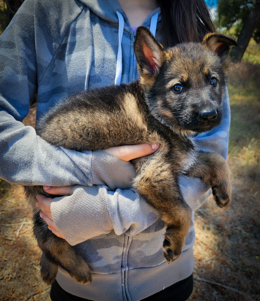 We often retain our puppies until 10 weeks of age. The purpose of this is to lay a foundation for socialization within our pack from an early age. This crucial fear and socialization period strengthens our puppies' coping and recovery skills by introducing them to a variety of situations. As a result, our puppies enter their new homes feeling confident and ready to begin training.